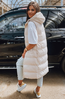 Lange Steppweste für Damen mit Kapuze beige Dstreet TY5099
