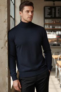 Herren Halb Rollkragen Pullover Dunkelblau Dstreet WX1898