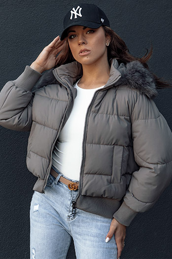 Damen Winterjacke gesteppt lang mit Kapuze SHINE grau Dstreet TY4564