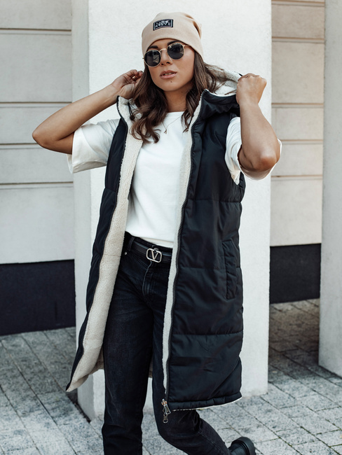 Damen lange Kapuzenweste COSYVIVA gesteppt schwarz Dstreet TY4603