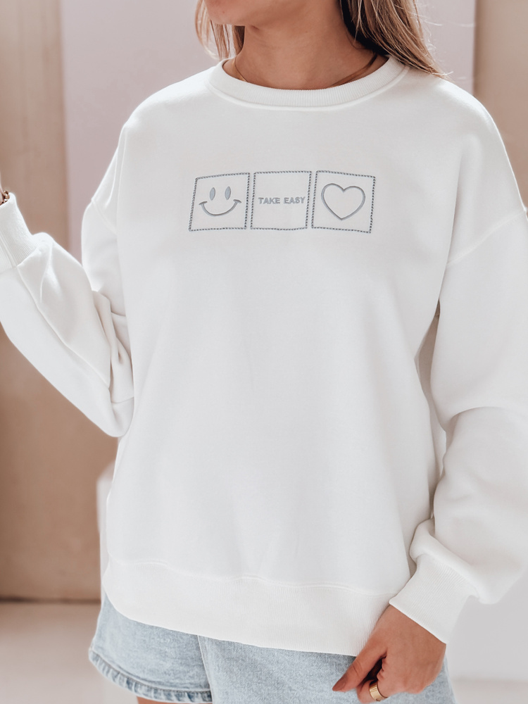 Damen Sweatshirt in Übergröße mit Stickerei EASYJOY weiß Dstreet BY1514