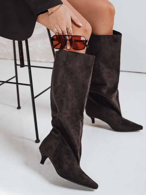 Damenstiefel mit breitem Schaft aus Wildleder braun Dstreet ZY1188