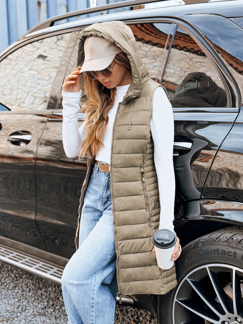Kamizelka damska pikowana z kapturem beżowa Dstreet TY5256